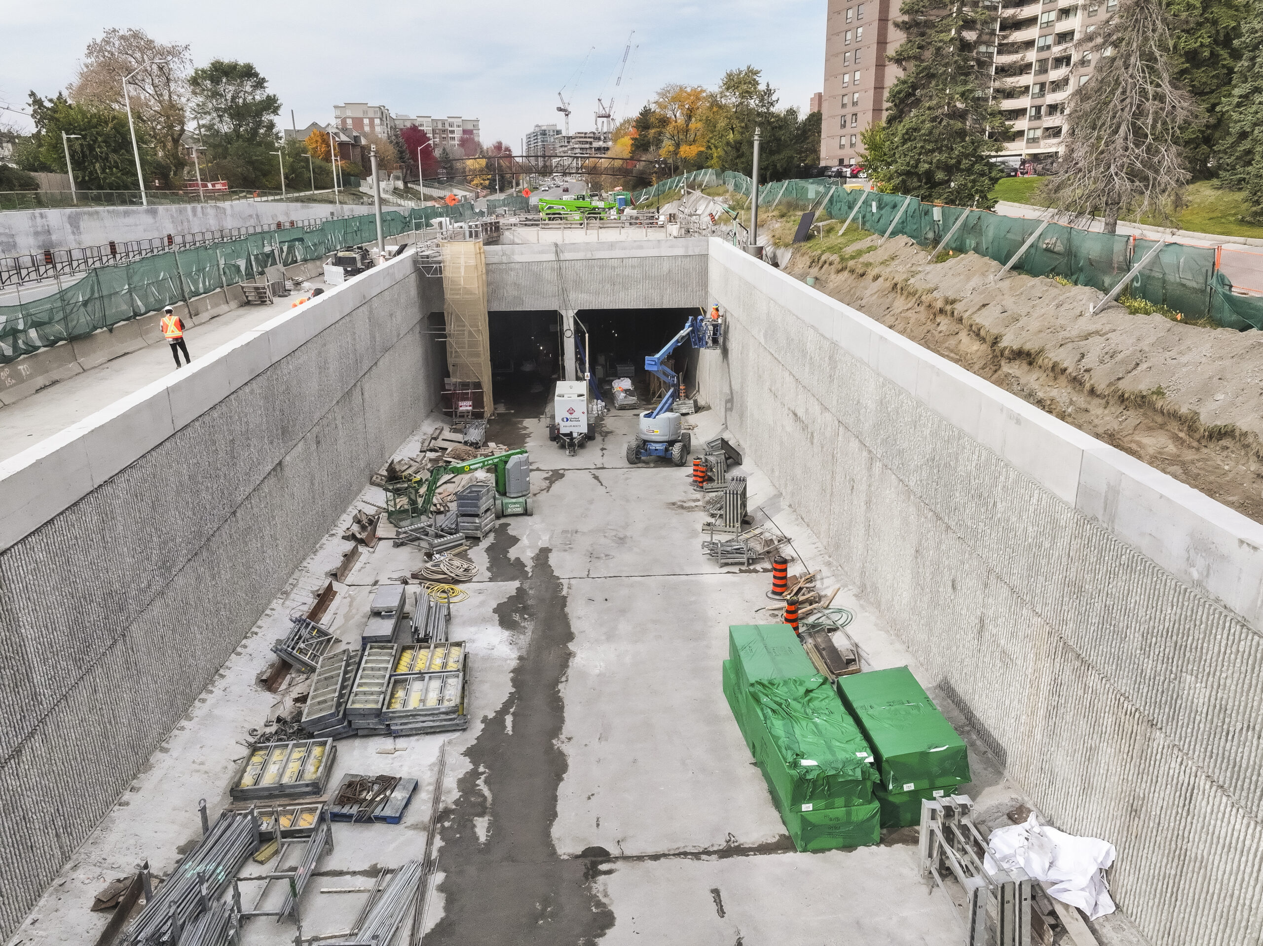 The expansion will include six new stops and two terminals. The tunnel design includes a launch shaft, maintenance shaft, extraction shaft, eight headwalls for four stations, four headwalls for two emergency exit buildings, nine cross passages and Eglinton Avenue W road realignment at Scarlett Portal. To support the new design, updates and services including utility relocations, traffic management plans, temporary access roads, geotechnical reports and monitoring and environmental reporting will also take place. These operations ensure the safety and sustainability of the project and the surrounding area.