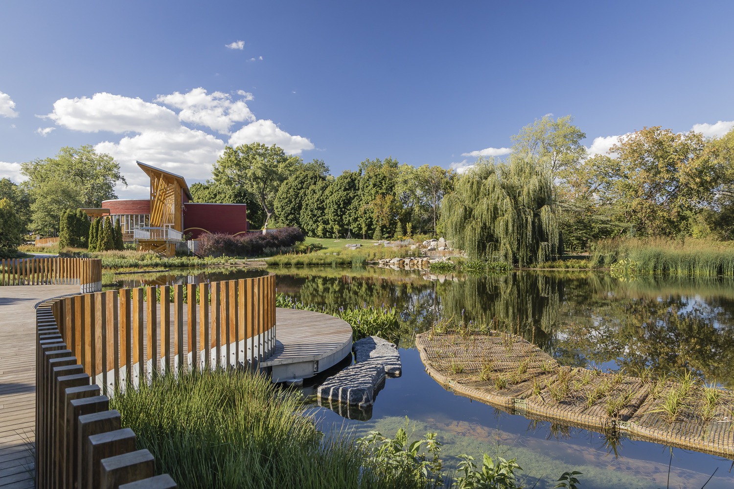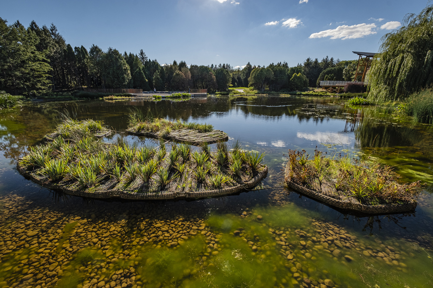 Located in the northeastern corner of the Montreal Botanical Garden, the pond at the Frédéric Back Tree Pavilion required rehabilitation and restoration to protect and enhance its biodiversity. Invasive plants had altered the nature of this urban water body and impacted the surrounding environment.