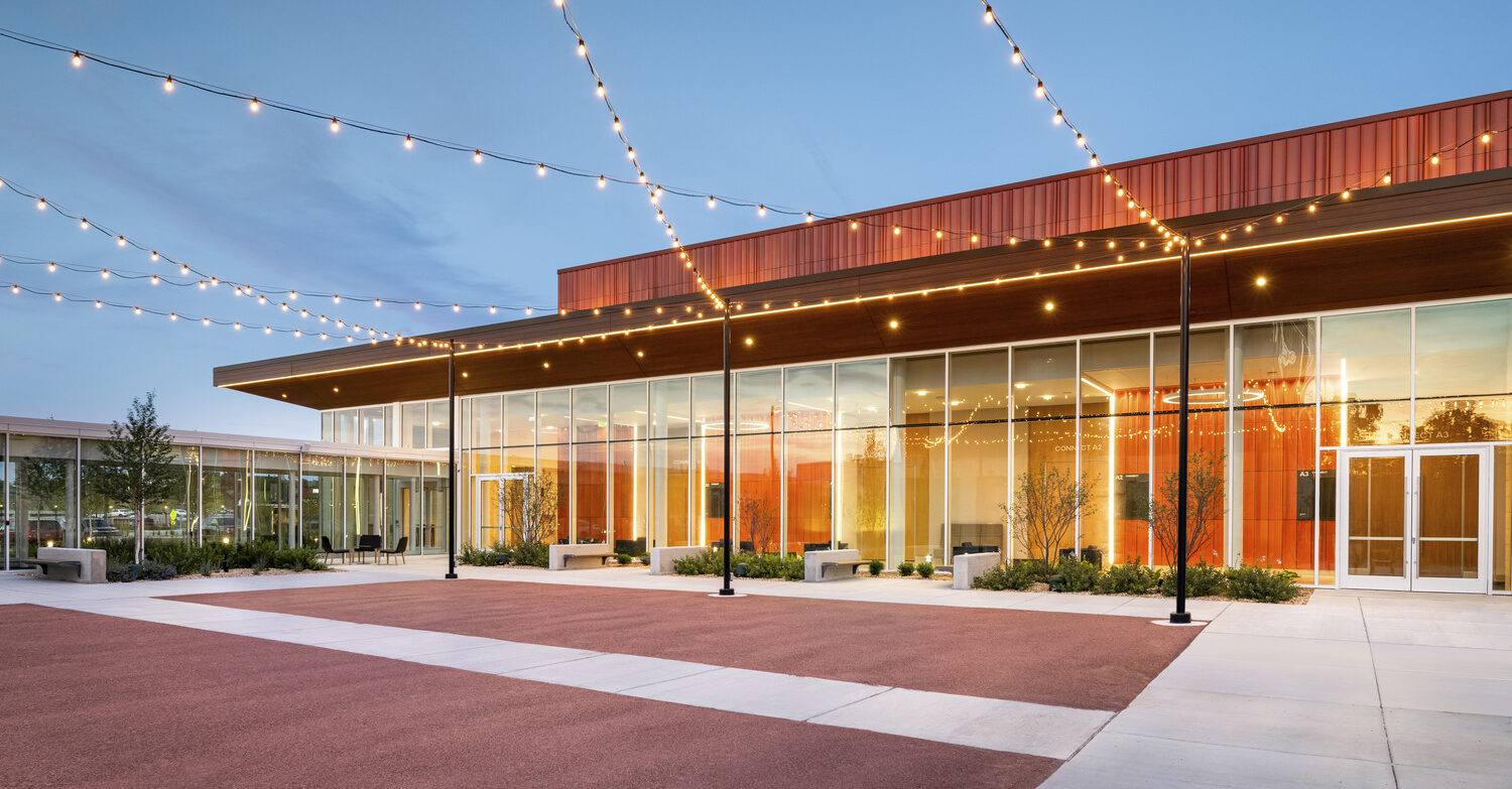 Interior and exterior lighting design brings the new Brookfield Conference Center to life. Clean lines of light continue as repeated modules within each meeting space and come together as a cohesive design when the space is fully opened. The raised volume of the main ballroom is washed with light on the exterior façade. Area plaza lighting is provided through decorative festoons, creating a flexible and magical layer of light.
