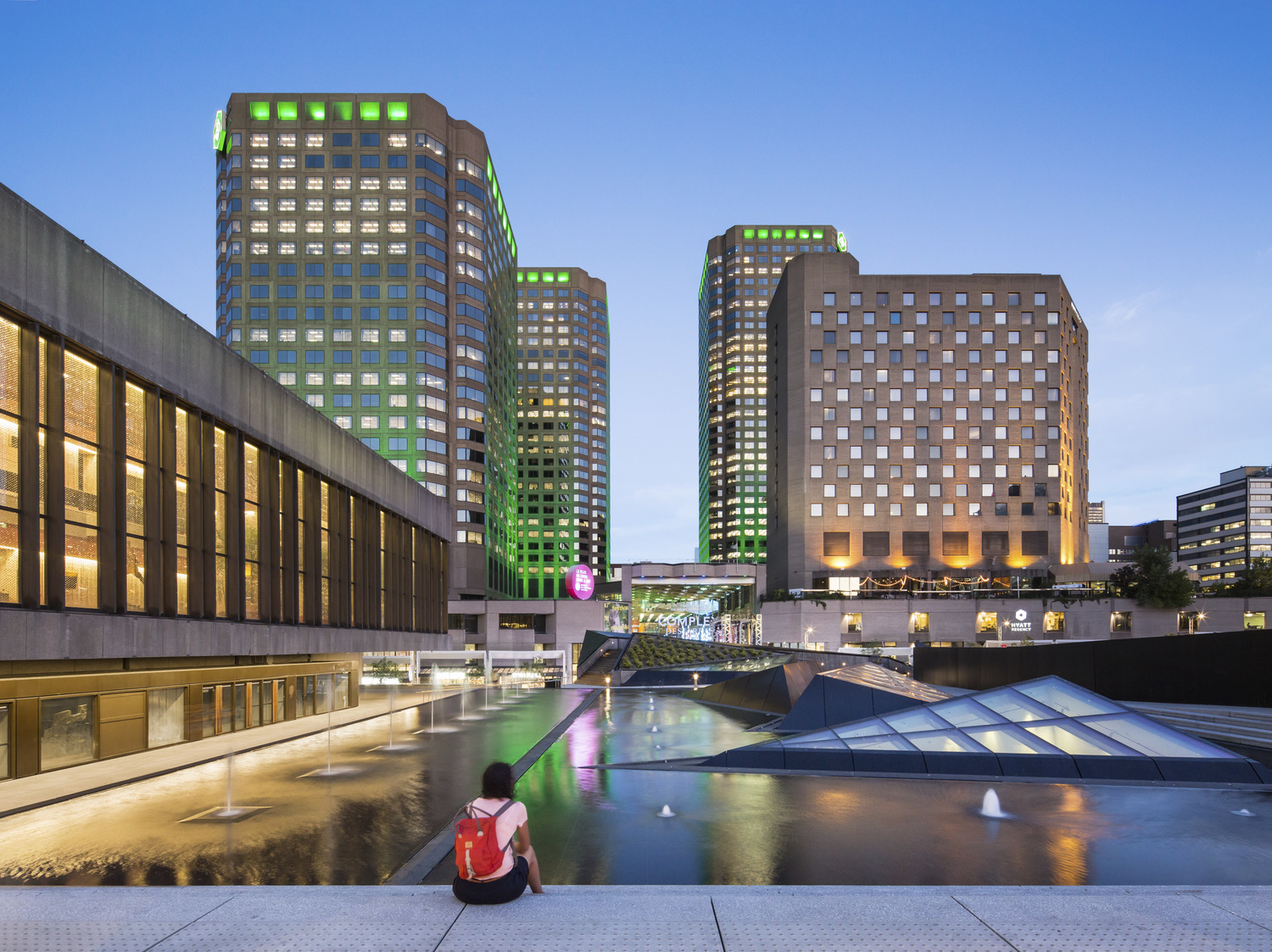 Located in the heart of Montreal in the Quartier des spectacles cultural district, Place des Arts is home to several cultural institutions and provides a unique, accessible gathering space. Its esplanade is one of the most visited public places in Montreal, hosting many festivals such as the Festival International de Jazz de Montréal, les FrancoFolies and Montréal en lumière.