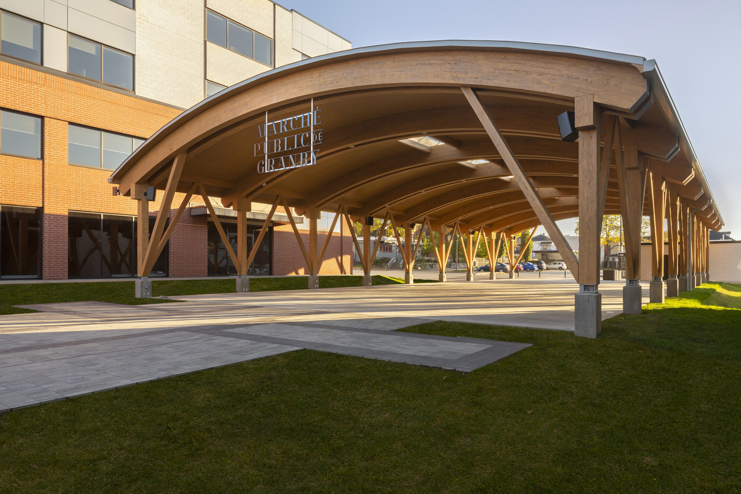 As part of its downtown revitalization, the Town of Granby wanted to give its public market a new permanent structure and create an all-seasons gathering place for cultural and community events. As a true community space, the project was carried out in collaboration with Marché public de Granby, Commerce Tourisme Granby and Vie culturelle et Communautaire de Granby.