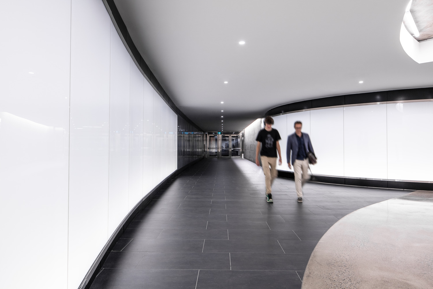 The new tunnel’s organic shape creates a modern, airy and sophisticated atmosphere underground. It was designed to invoke a curving motion in both its horizontal and vertical axes. The unique design creates lounge and collaboration spaces for users.