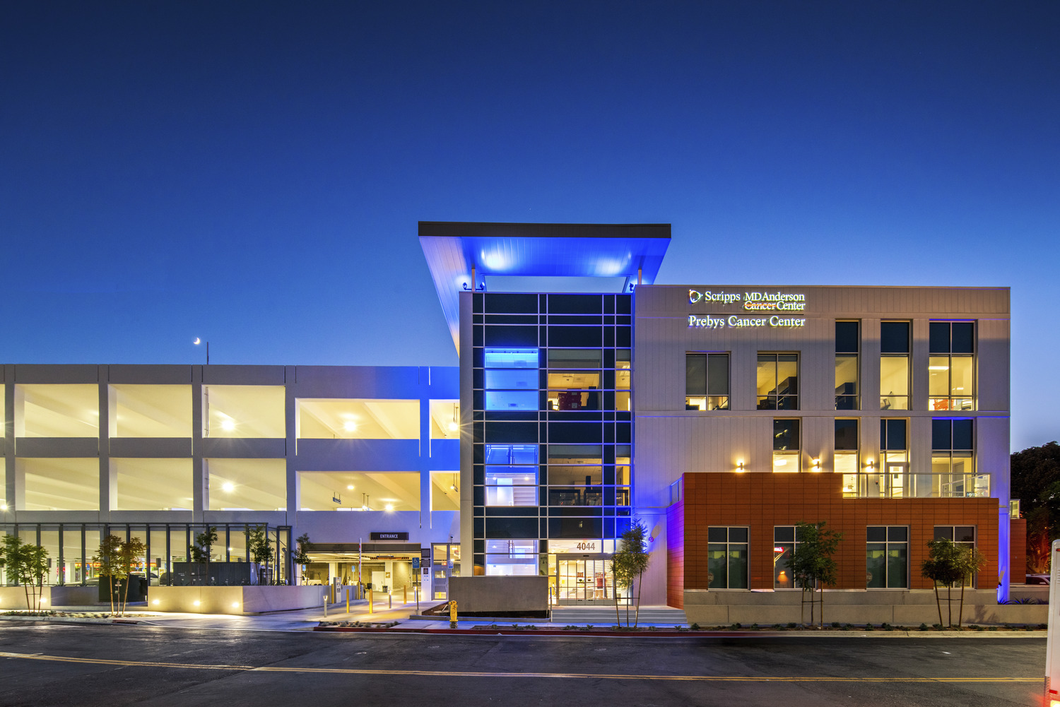 The Scripps Mercy MD Anderson Prebys Cancer Center offers the latest and most advanced technology available in precision medicine. The project includes a medical office building, exam rooms for care providers to visit with patients, radiation therapy and imaging spaces, a procedure and infusion center, two minor-surgical procedural rooms, as well as clinical and community support spaces. Additionally, a four-level, 140-stall parking garage structure connects to the center for easier patient accessibility.
